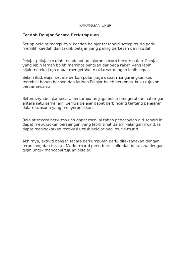 Contoh Karangan Upsr Bahasa Melayu Senarai Tahun 6